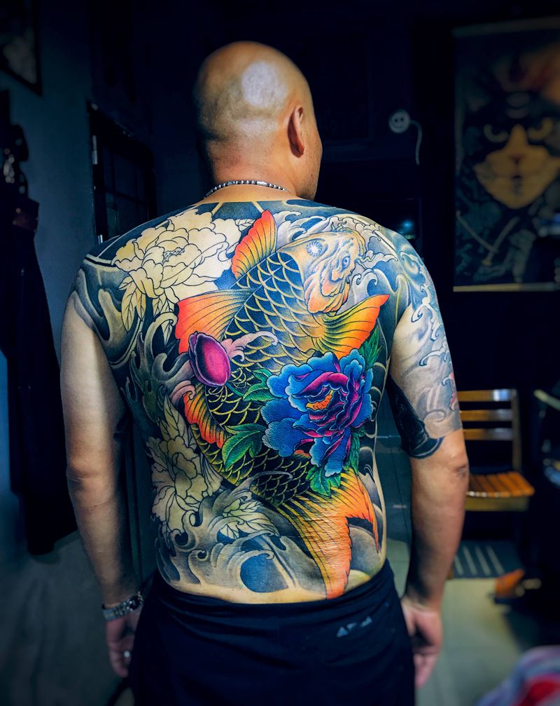 当前位置: 首页 >四川省凉山彝族自治州纹身店-针魂刺青纹身图案>满背鱼纹身图片_新传统纹身图案