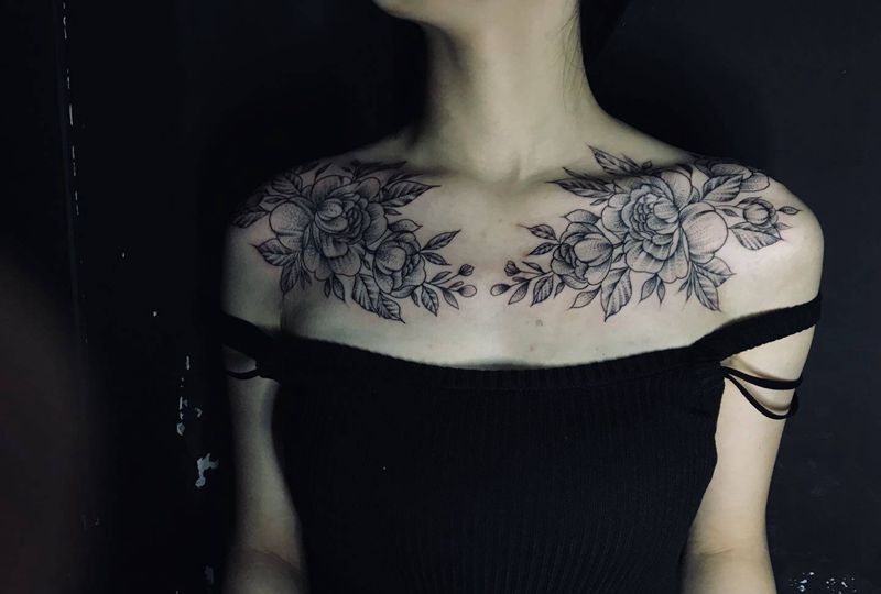 • 女性大花胸纹身_43张霸气漂亮的女性大花胸纹身图案作品