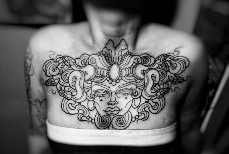 • 女性大花胸纹身_43张霸气漂亮的女性大花胸纹身图案作品