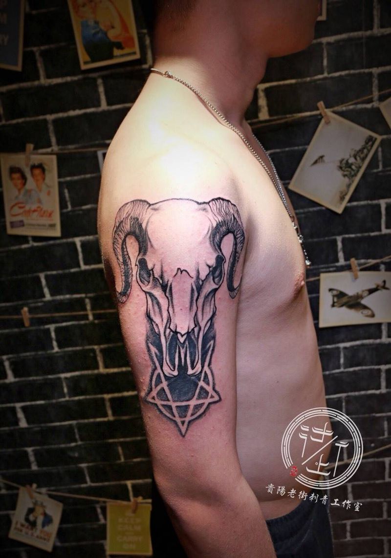 当前位置: 首页 >贵州省贵阳市纹身店-贵阳老街刺青工作室纹身图案>羊头纹身图片