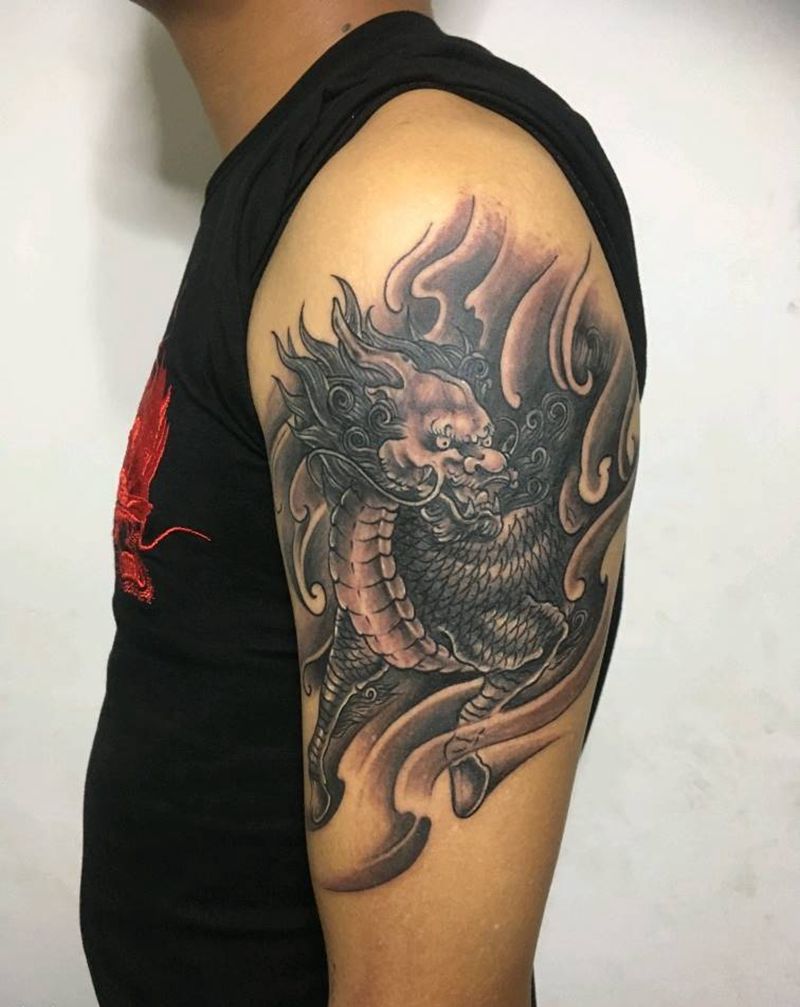 • T网红王老大花腿龙纹身图片_腿部新传统纹身图案