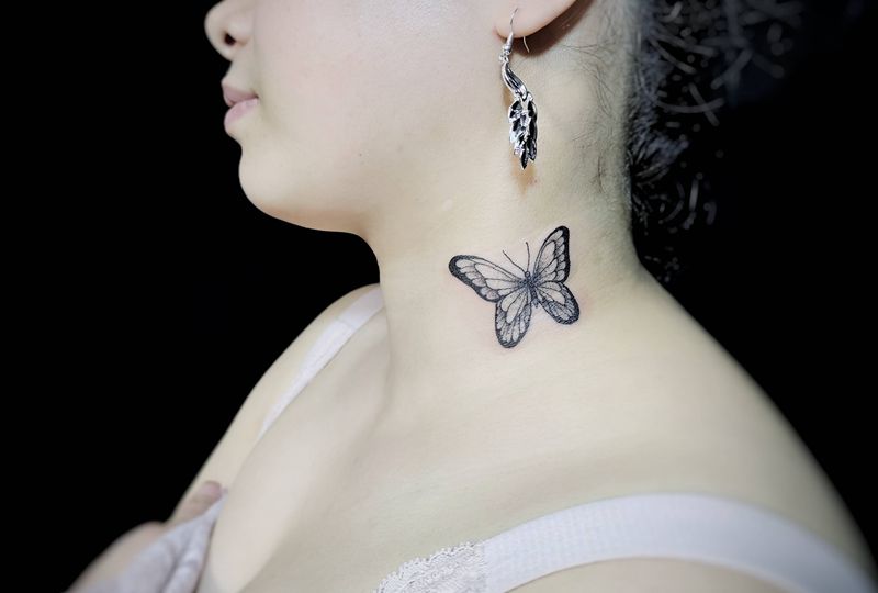 当前位置: 首页 >贵州省贵阳市纹身店-贵阳三目刺青纹身店纹身图案>蝴蝶纹身图片_颈部脚部纹身图案