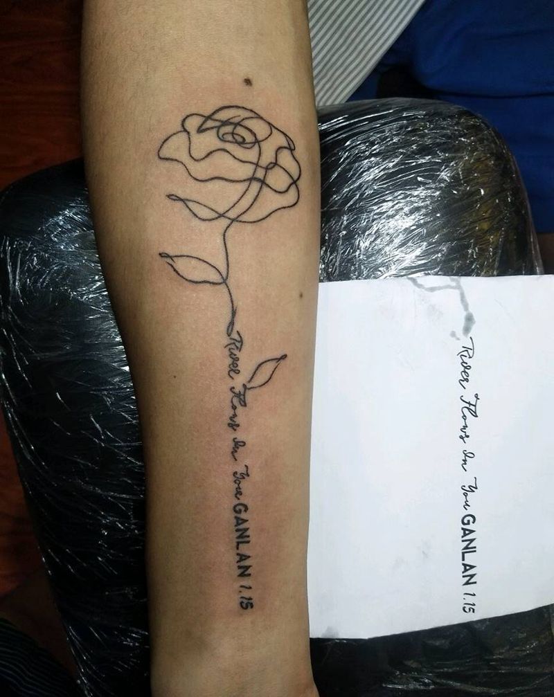 当前位置: 首页 >贵州省贵阳市纹身店-贵阳三目刺青纹身店纹身图案>玫瑰花与字体纹身图片