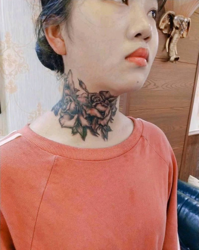 当前位置: 首页 >贵州省贵阳市纹身店-贵阳三目刺青纹身店纹身图案>脖子伤疤遮盖,玫瑰花纹身图片_颈部欧美写实纹身图案
