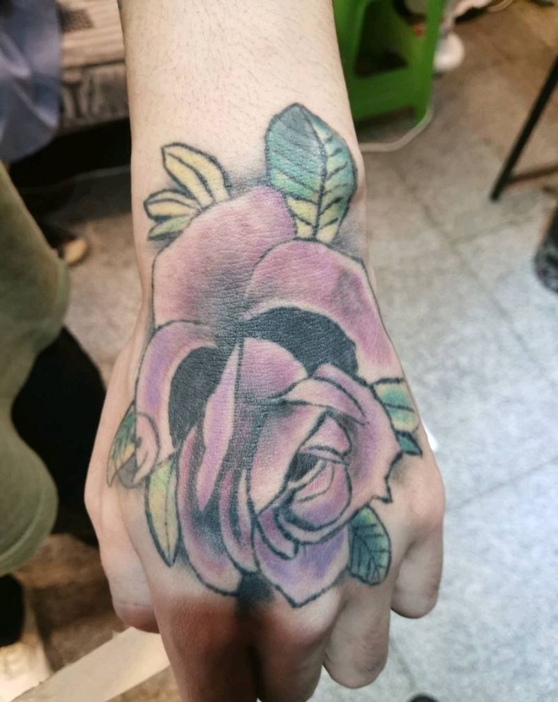 手背玫瑰花纹身修改遮盖纹身图片_手部Old School纹身图案