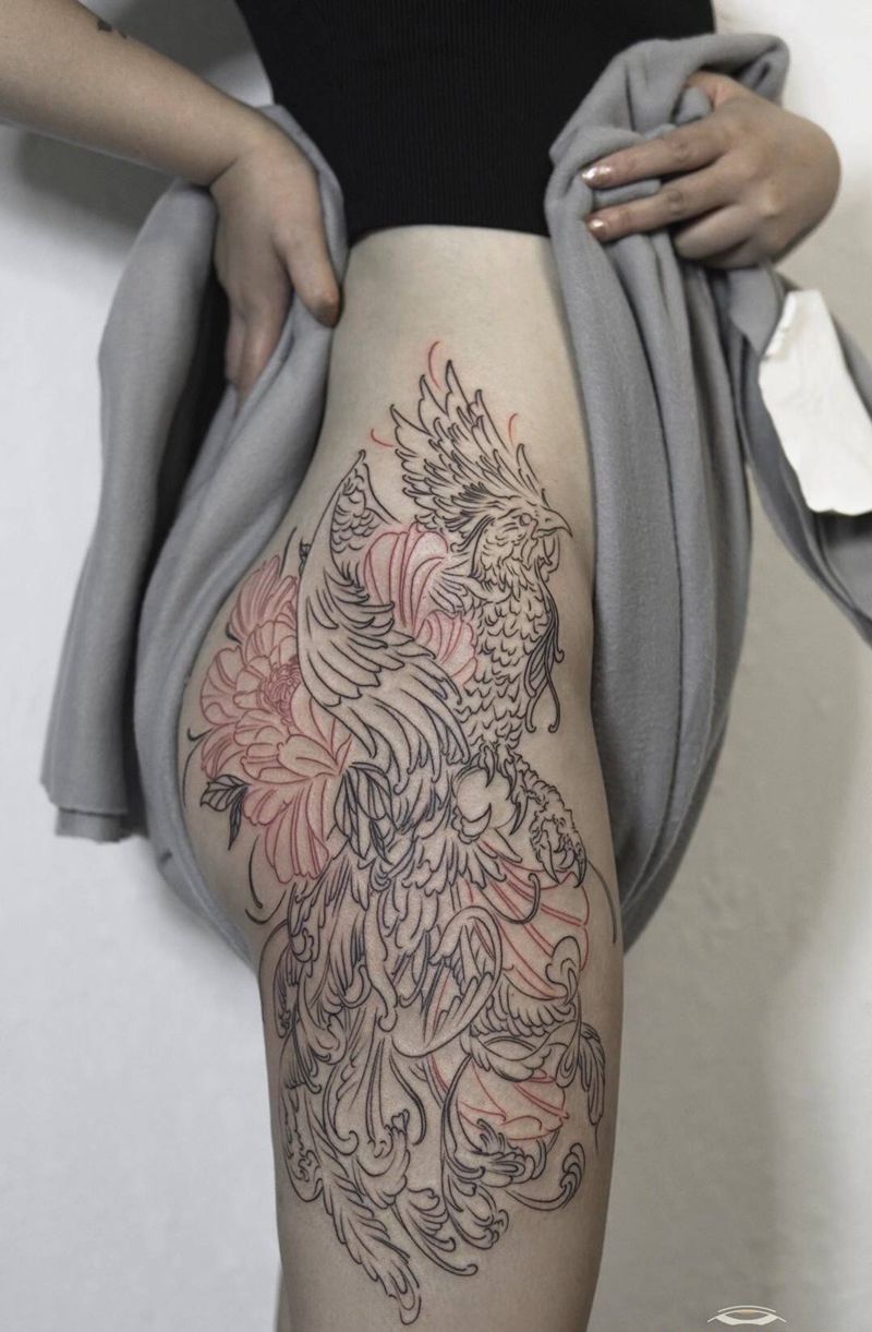 当前位置: 首页 >贵州省贵阳市纹身店-隐浊刺青纹身图案>大腿凤凰纹身图片_腿部纹身图案