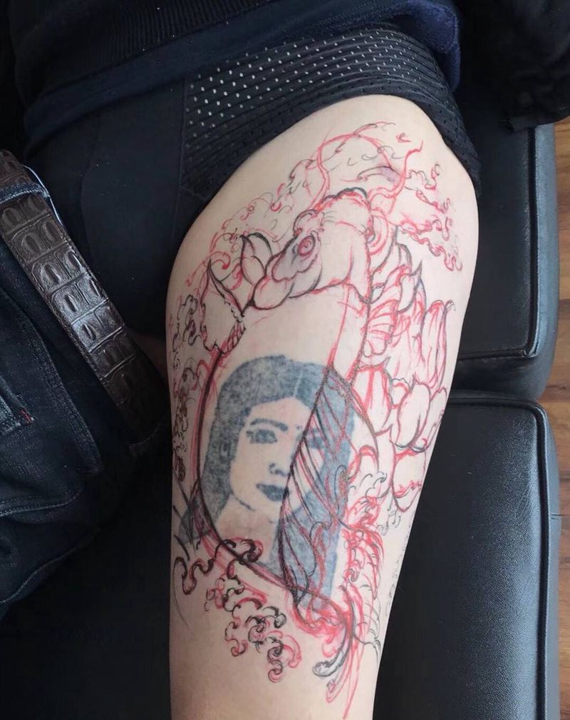 • T网红王老大花腿龙纹身图片_腿部新传统纹身图案