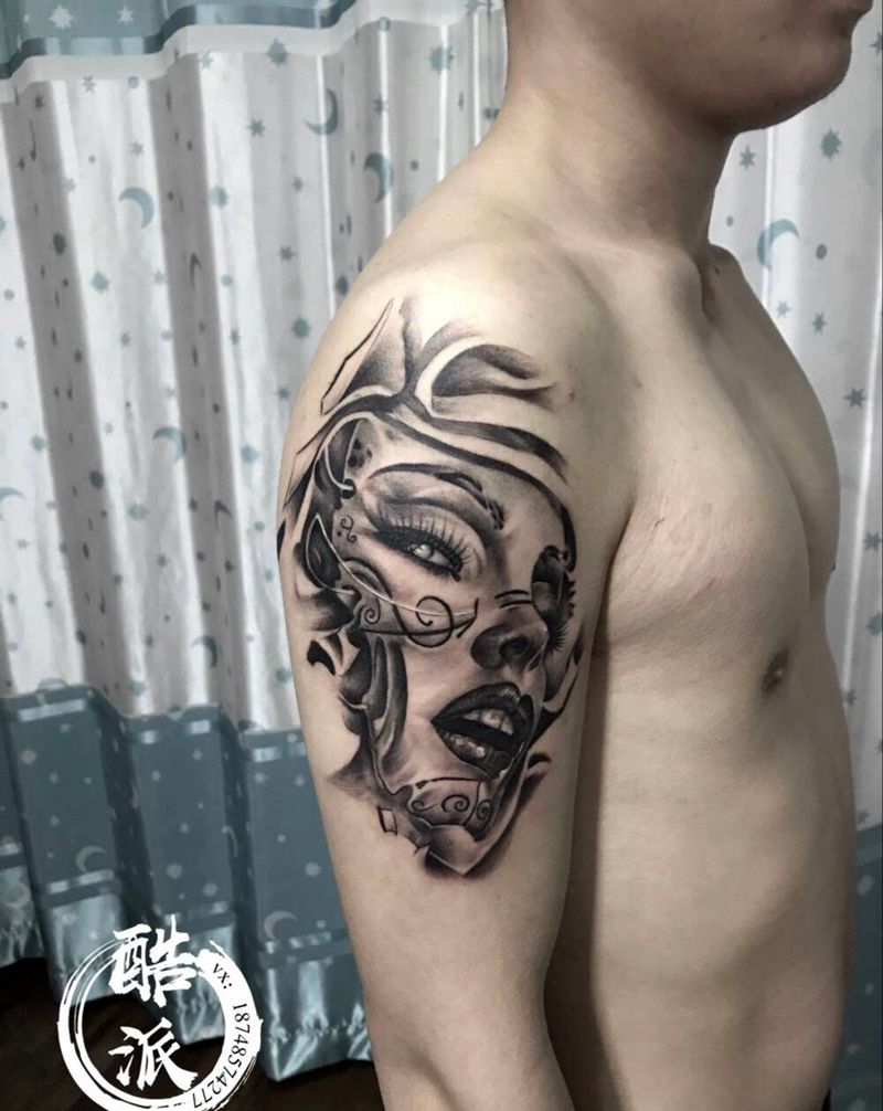 • 纹身吧推荐的披肩图腾半胛纹身图案作品展示
