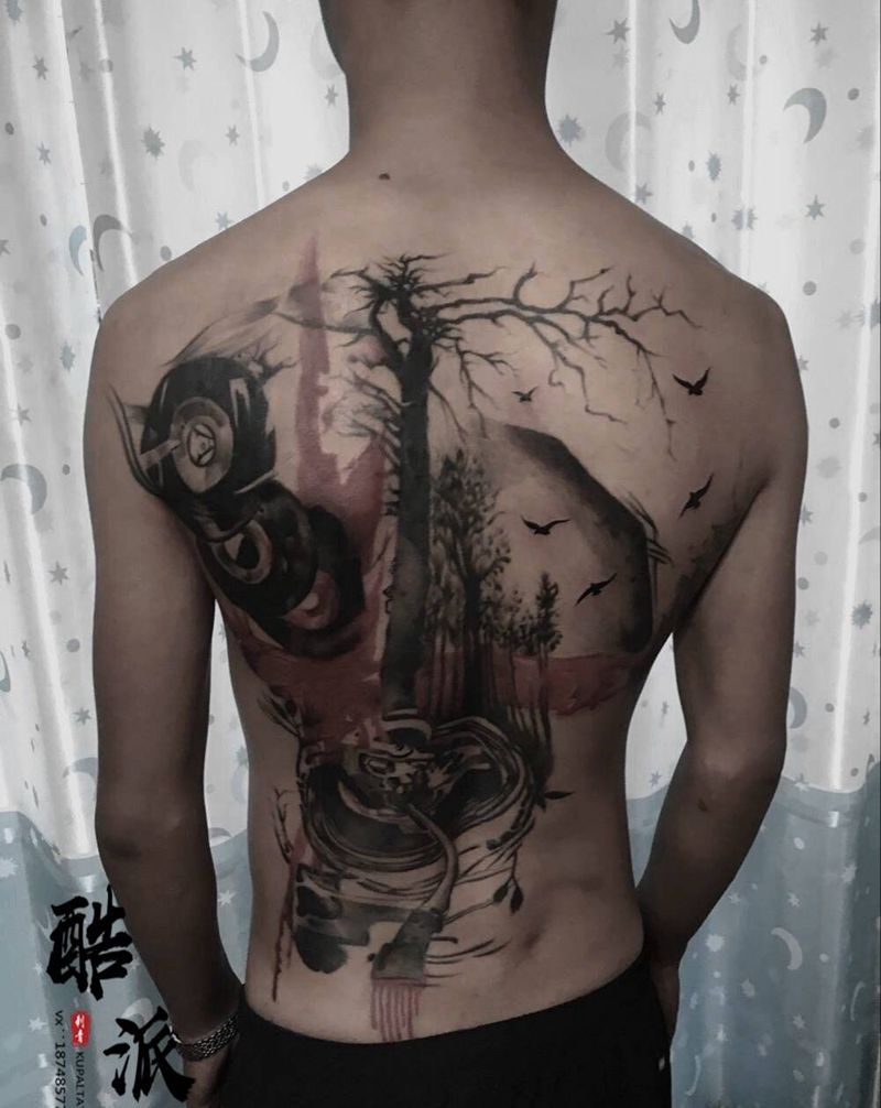 黑灰满背纹身图案
