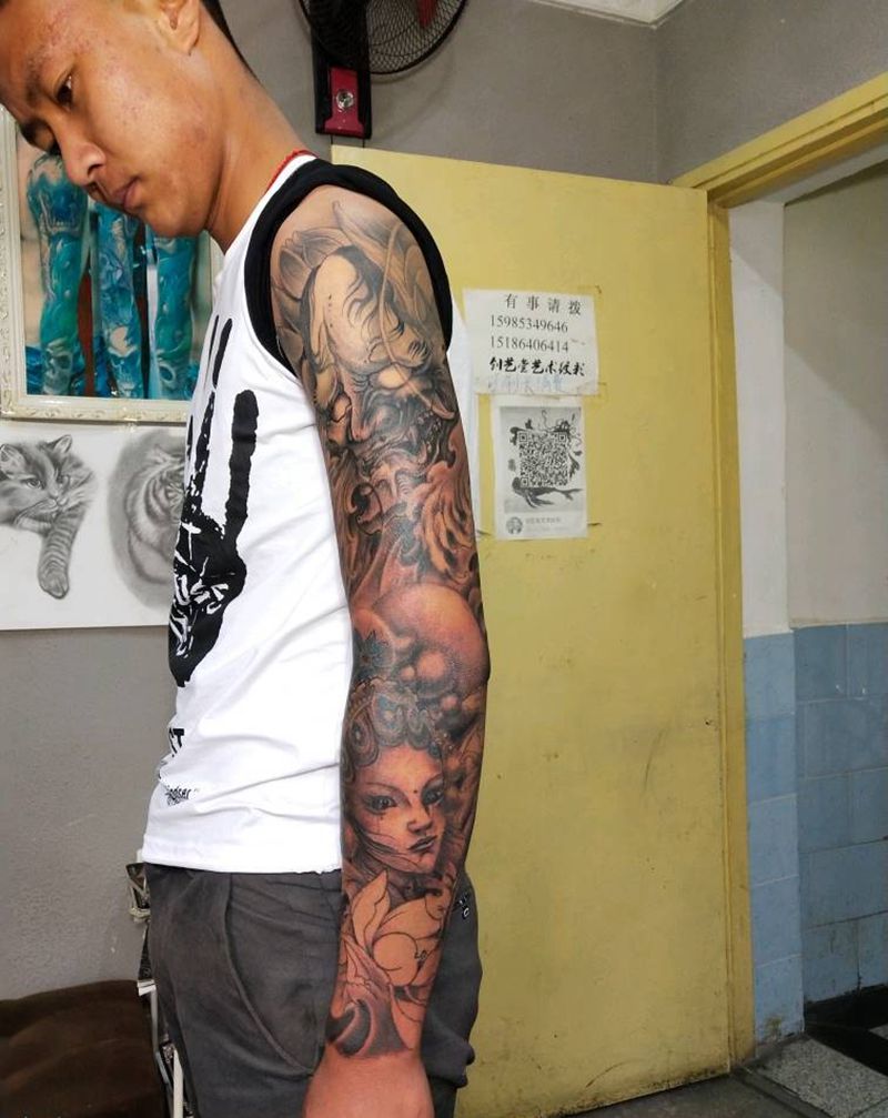当前位置: 首页 >贵州省黔西南布依族苗族自治州纹身店-飞燕纹绣纹身工作室纹身图案>花臂纹身图片_手臂新传统纹身图案