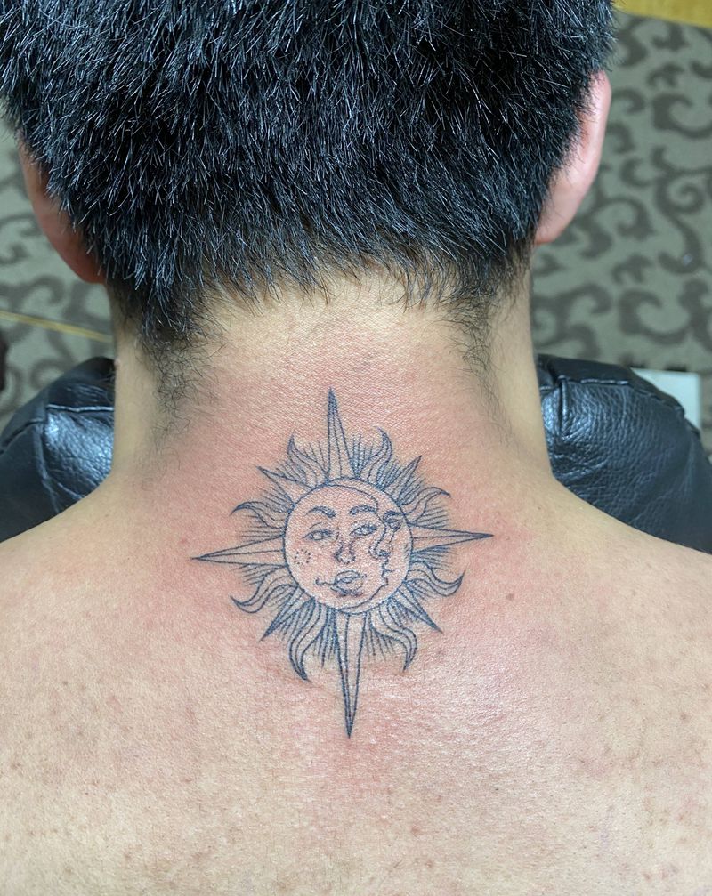 太阳月亮纹身图片_肩部颈部纹身图案