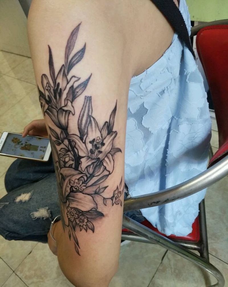 当前位置: 首页 >贵州省安顺市纹身店-后街刺青纹身图案>百合花纹身图片