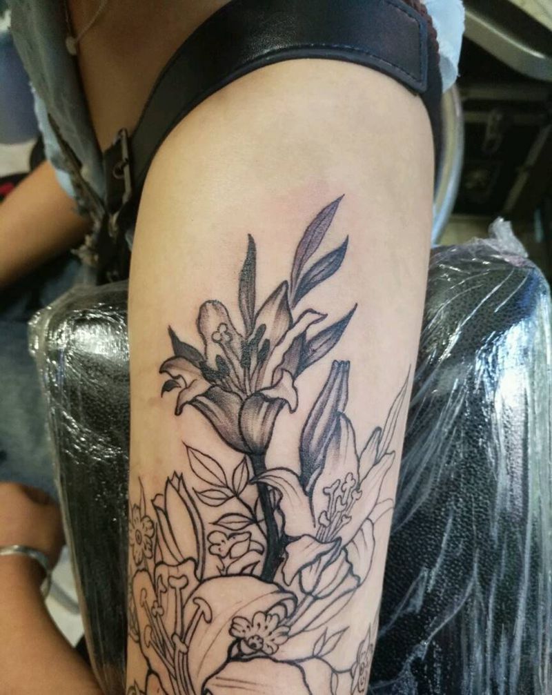 当前位置: 首页 >贵州省安顺市纹身店-后街刺青纹身图案>百合花纹身图片