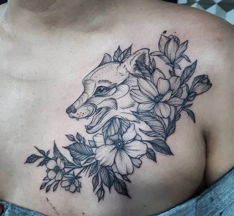 • 女性大花胸纹身_43张霸气漂亮的女性大花胸纹身图案作品