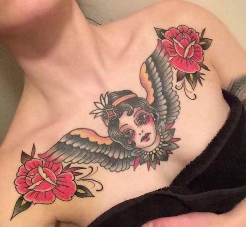 • 女性大花胸纹身_43张霸气漂亮的女性大花胸纹身图案作品