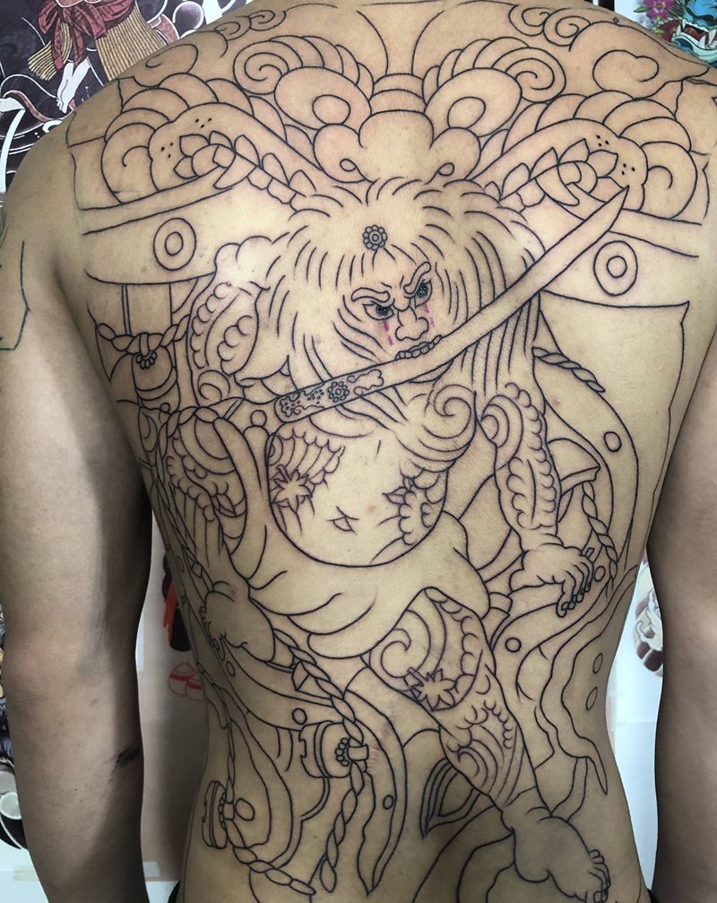 • 黑灰满背纹身图案