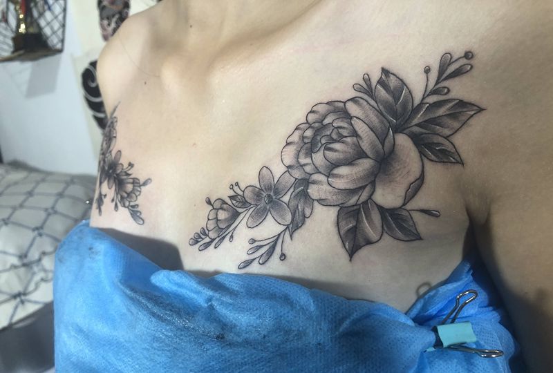 • 女性大花胸纹身_43张霸气漂亮的女性大花胸纹身图案作品
