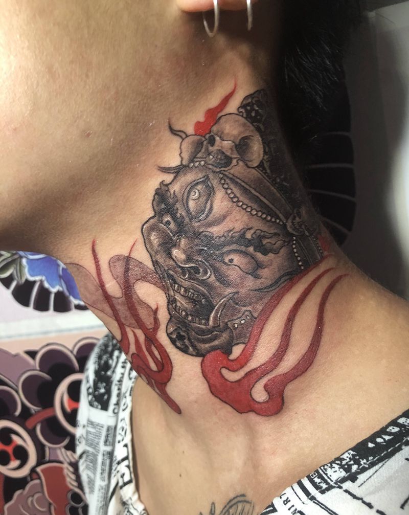 大黑天纹身图片_颈部纹身图案