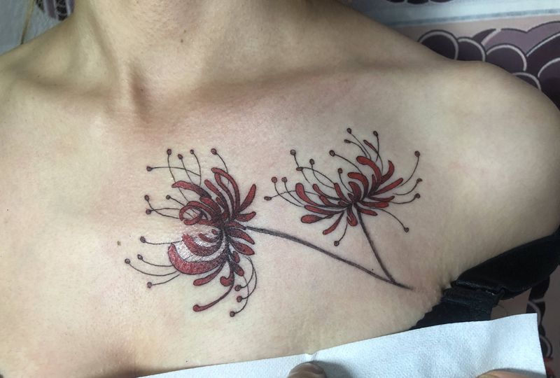 彼岸花纹身图片_胸部纹身图案