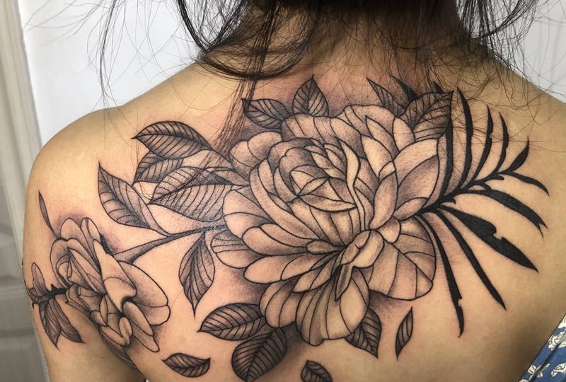 • 女性大花胸纹身_43张霸气漂亮的女性大花胸纹身图案作品