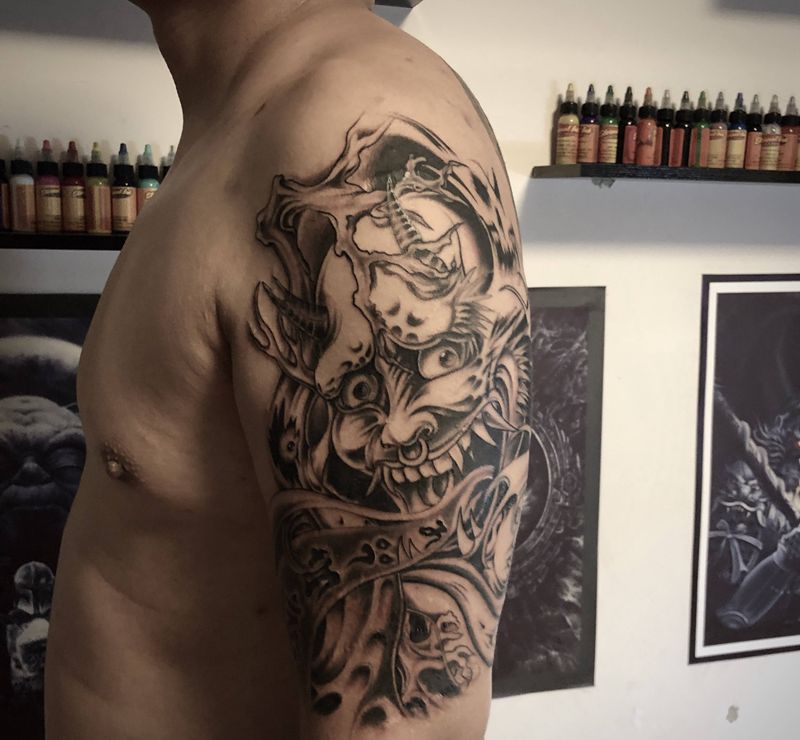 当前位置: 首页 >贵州省铜仁市纹身店-黔墨刺青纹身图案>大臂般若纹身图片_新传统纹身图案
