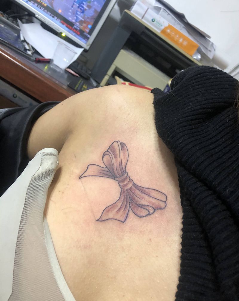 蝴蝶结纹身图片_胸部纹身图案