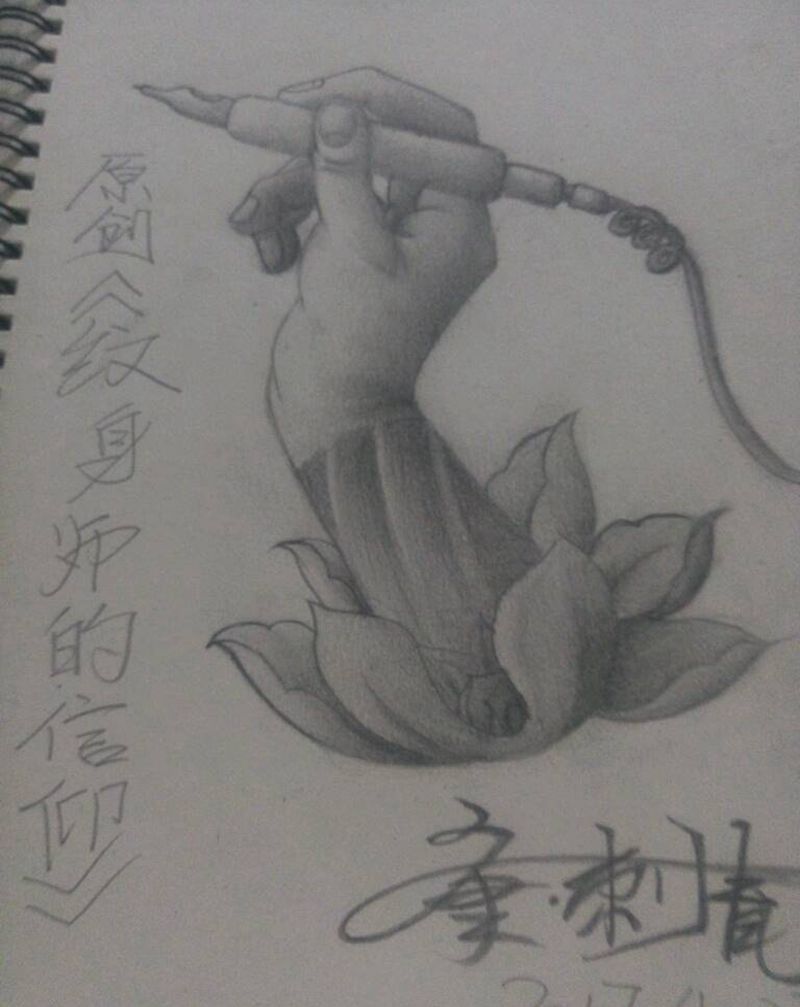 当前位置: 首页 >贵州省黔东南苗族侗族自治州纹身店-刺墨文化纹身图案>原创手稿《纹身师的信仰》纹身图片