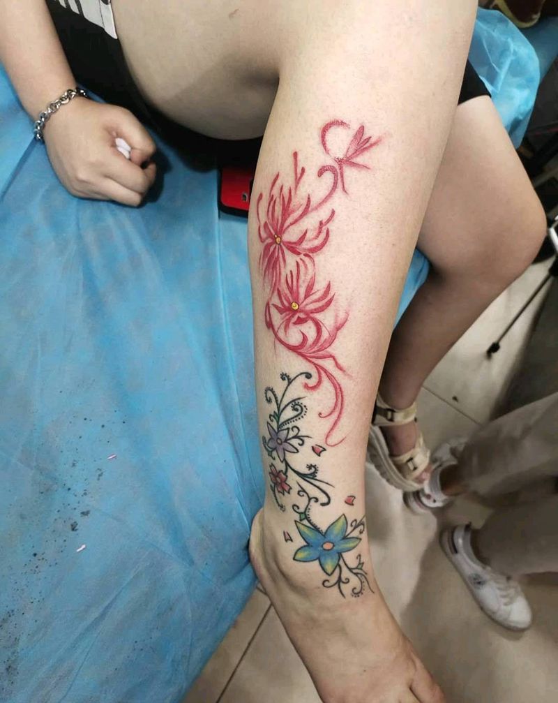 彼岸花纹身图片_腿部纹身图案