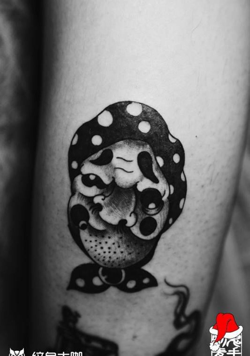 • T包小腿吹火男+阿多福纹身图片_腿部老传统新传统吹火男阿