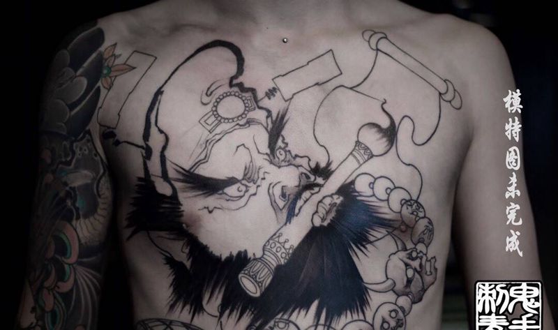 • H传统钟馗纹身 钟馗过肩纹身图案