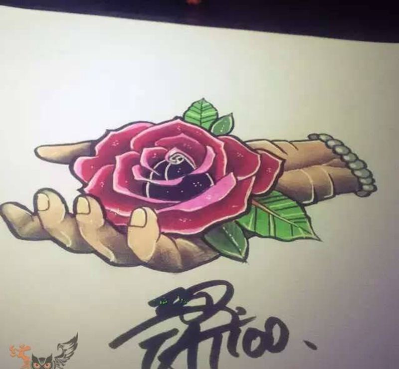 • 手背潮流时尚的玫瑰花眼睛纹身图案
