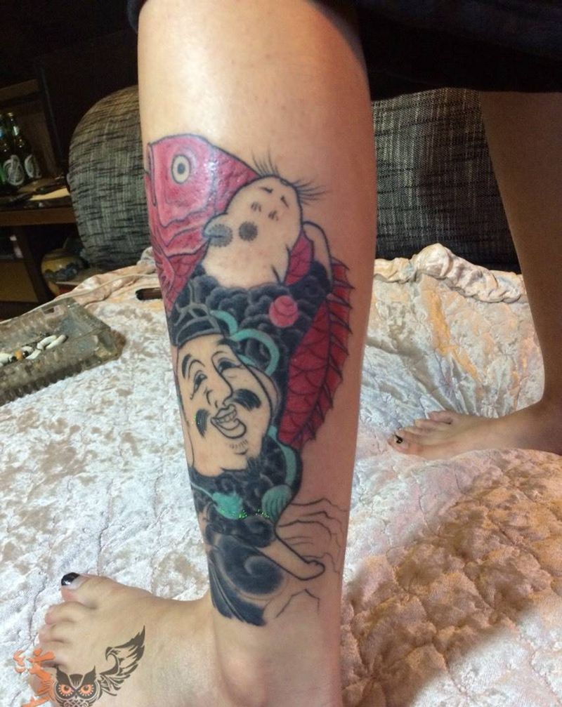 • T包小腿吹火男+阿多福纹身图片_腿部老传统新传统吹火男阿