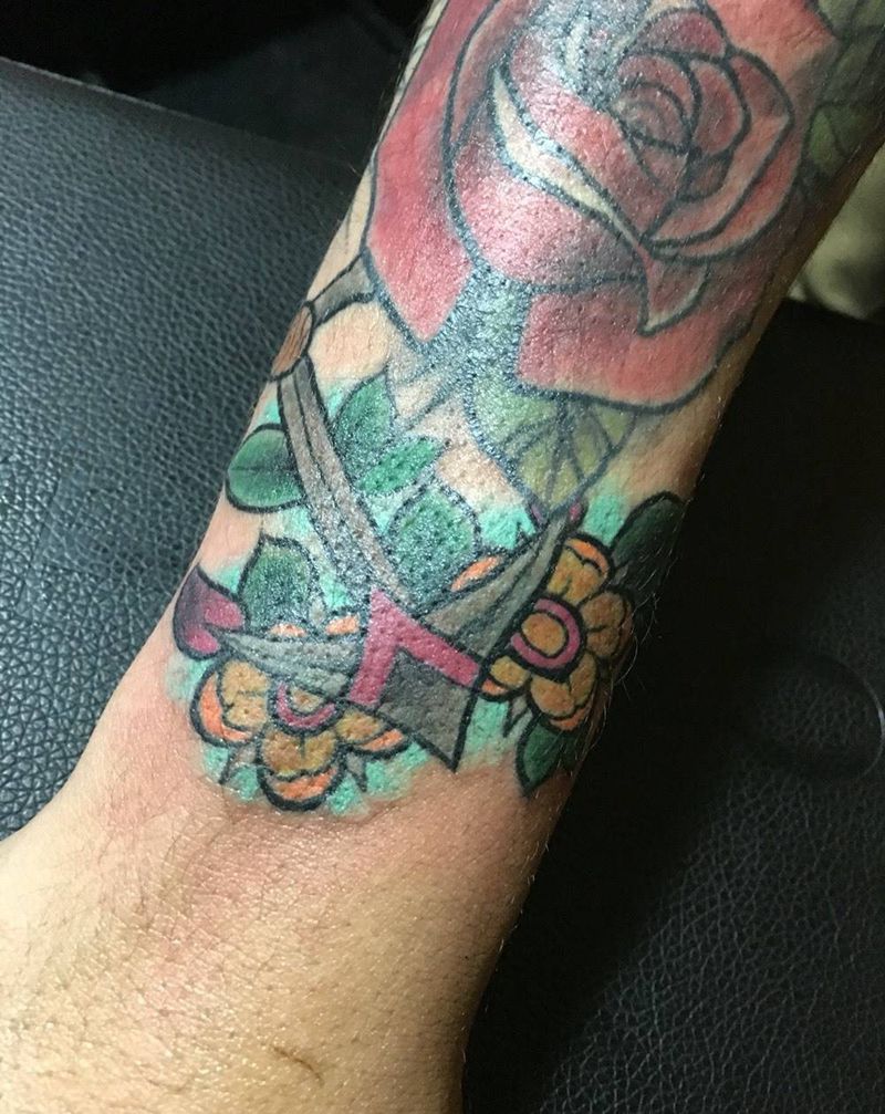 当前位置: 首页 >云南省昆明市纹身店-KD TATTOO Studio纹身图案>现画现刺纹身图片_成品手臂欧美静物纹身图案