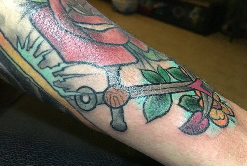 当前位置: 首页 >云南省昆明市纹身店-KD TATTOO Studio纹身图案>现画现刺纹身图片_成品手臂欧美静物纹身图案