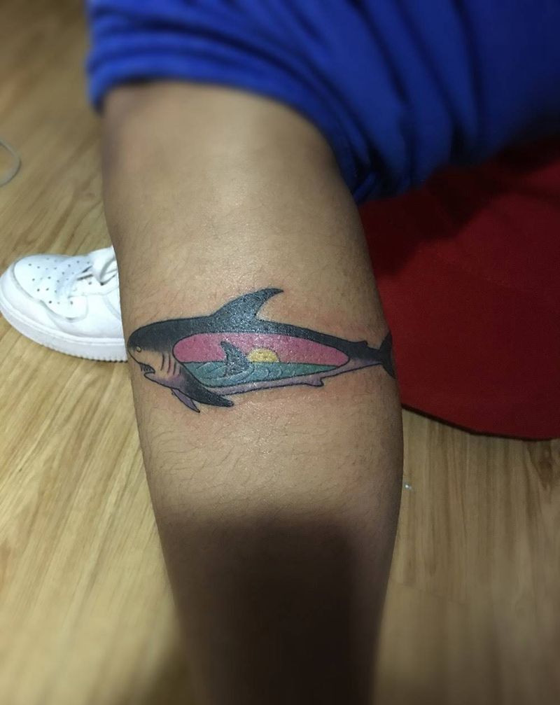 当前位置: 首页 >云南省昆明市纹身店-KD TATTOO Studio纹身图案>鲨鱼纹身图片_成品手稿腿部欧美动物纹身图案