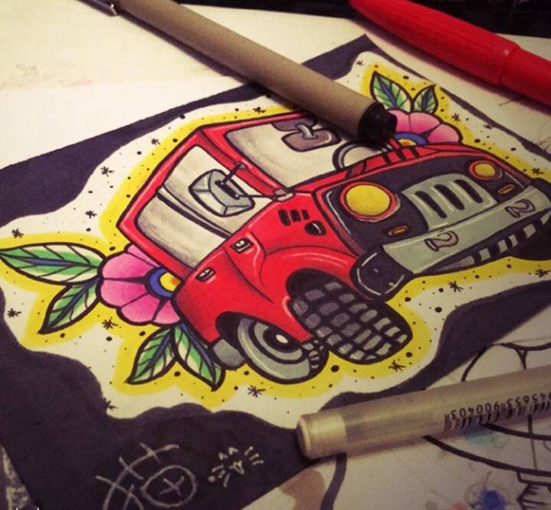 当前位置: 首页 >云南省昆明市纹身店-KD TATTOO Studio纹身图案>越野车纹身图片_手稿插画欧美纹身图案