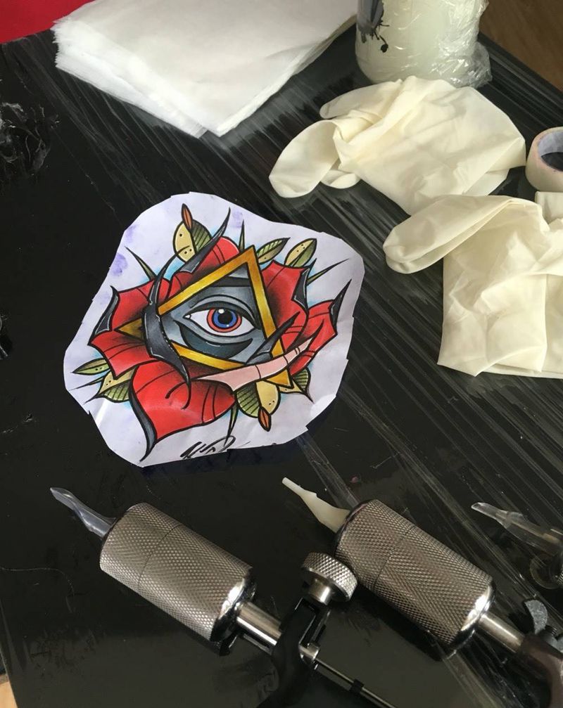 • 手背潮流时尚的玫瑰花眼睛纹身图案