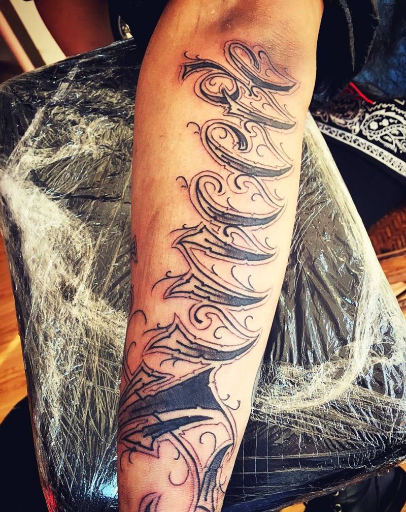 当前位置: 首页 >云南省昆明市纹身店-KD TATTOO Studio纹身图案>奇卡诺字体设计纹身图片_成品手稿欧美手臂字符原创纹身图案