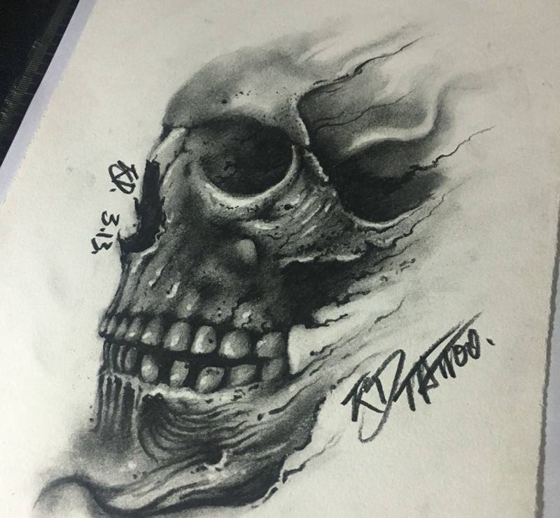 当前位置: 首页 >云南省昆明市纹身店-KD TATTOO Studio纹身图案>暗黑骷髅写实手稿纹身图片_手稿插画欧美写实纹身图案