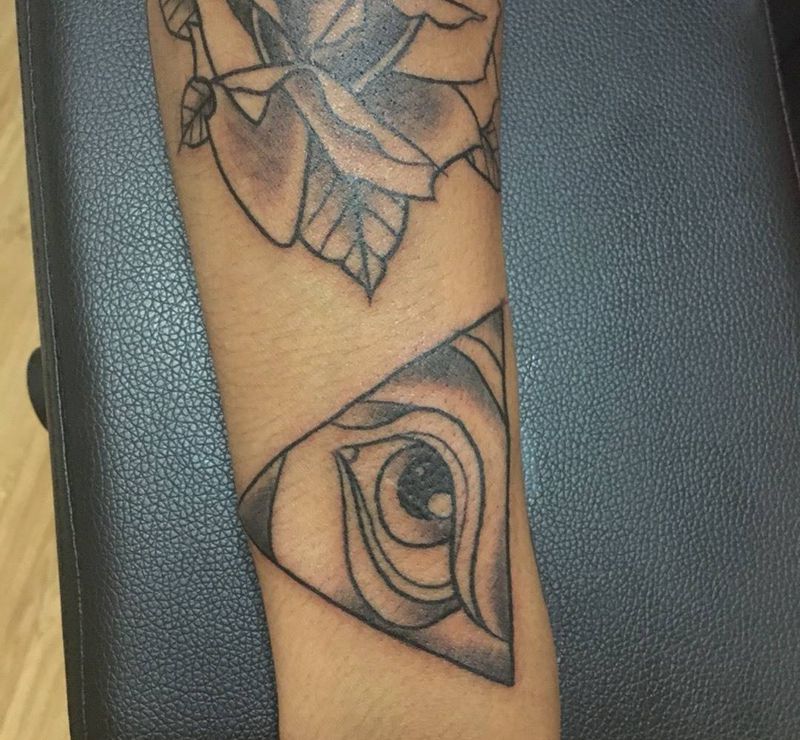 • 手背潮流时尚的玫瑰花眼睛纹身图案