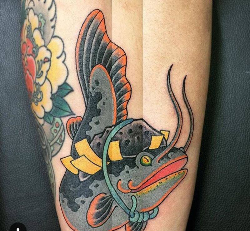 • T包小腿吹火男+阿多福纹身图片_腿部老传统新传统吹火男阿