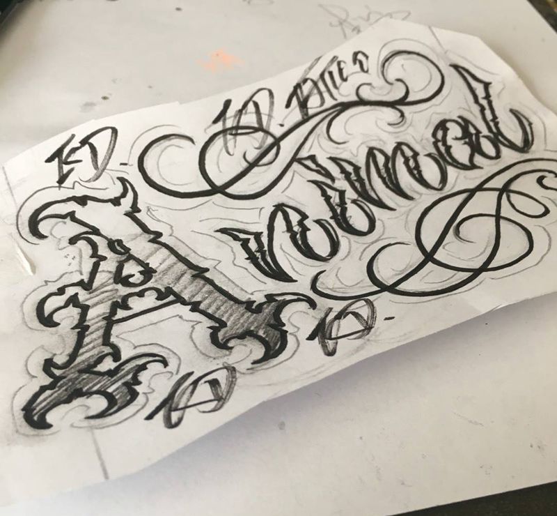 今天的字体设计制作纹身图片_手稿成品腿部欧美字符纹身图案