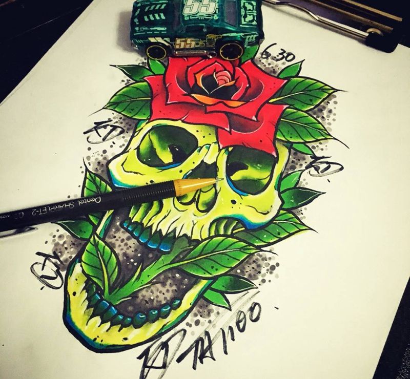 当前位置: 首页 >云南省昆明市纹身店-KD TATTOO Studio纹身图案>骷髅玫瑰稿纹身图片_手稿插画欧美纹身图案
