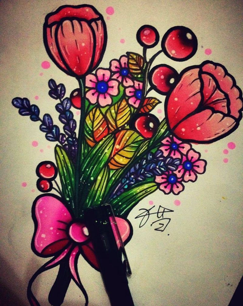 Old school稿纹身图片_插画手稿颈部清新纹身图案