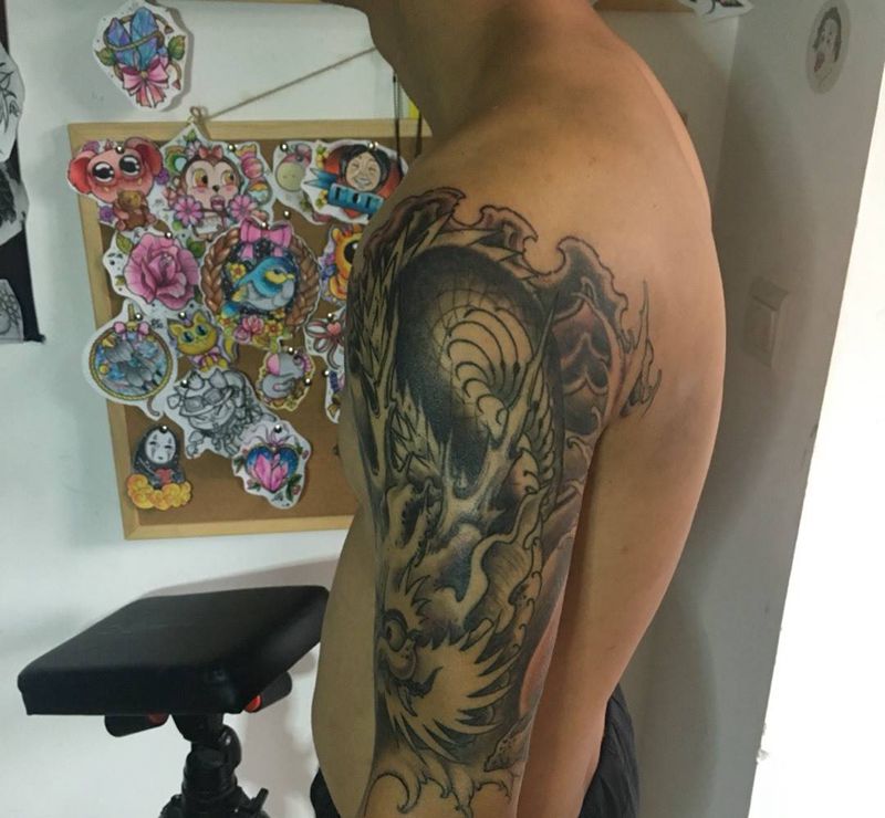 • 纹身吧推荐的披肩图腾半胛纹身图案作品展示