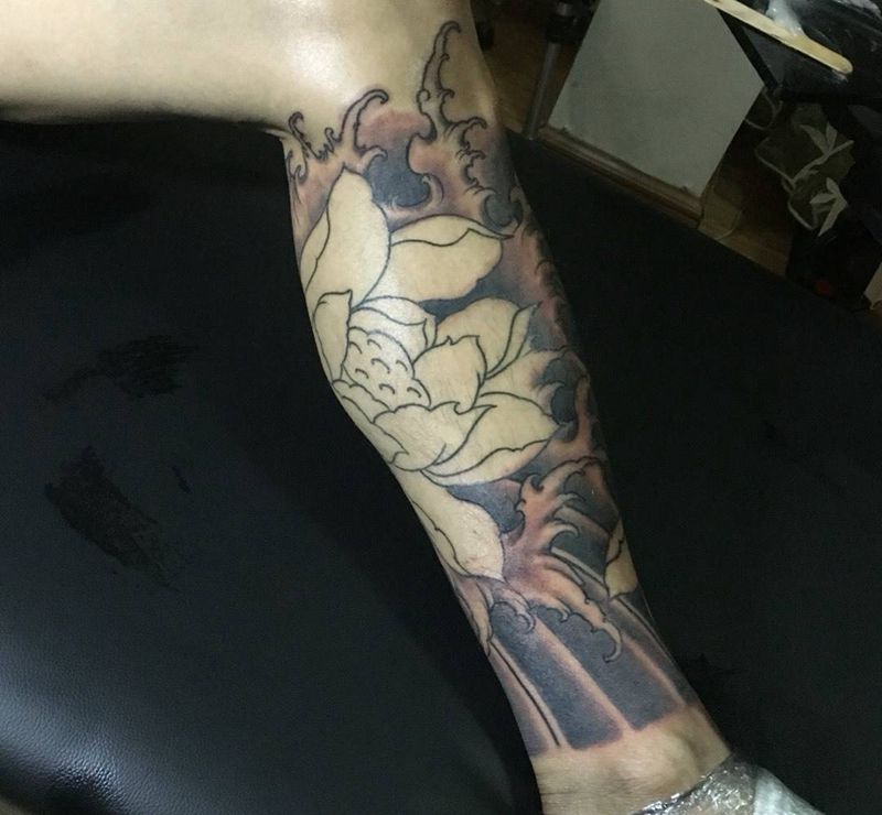 当前位置: 首页 >云南省昆明市纹身店-KD TATTOO Studio纹身图案>传统浪花包小腿纹身图片_成品腿部传统纹身图案