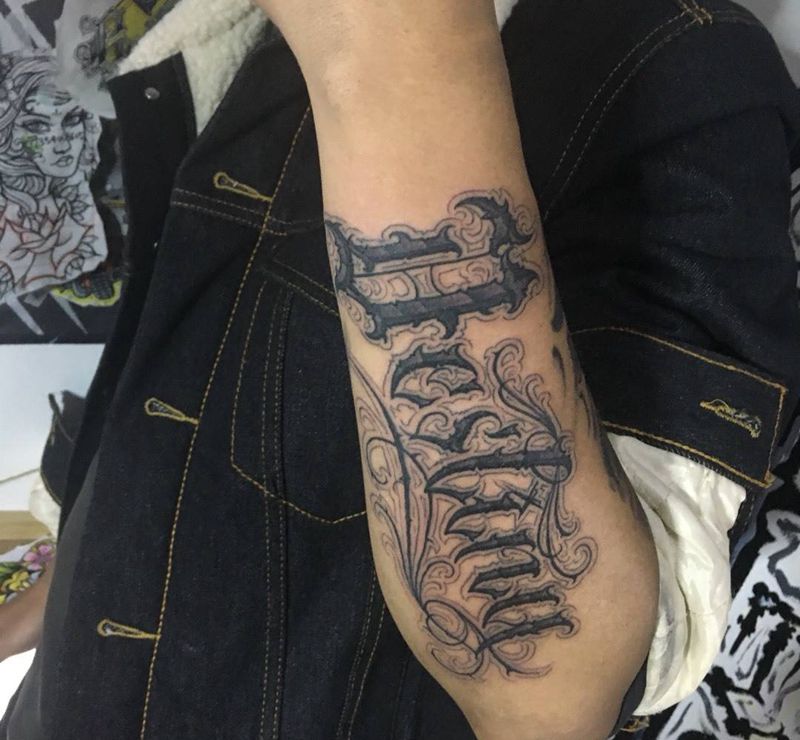 当前位置: 首页 >云南省昆明市纹身店-KD TATTOO Studio纹身图案>奇卡诺手写字体纹身图片_成品手稿欧美写实字符奇卡诺花体字匪帮纹身图案