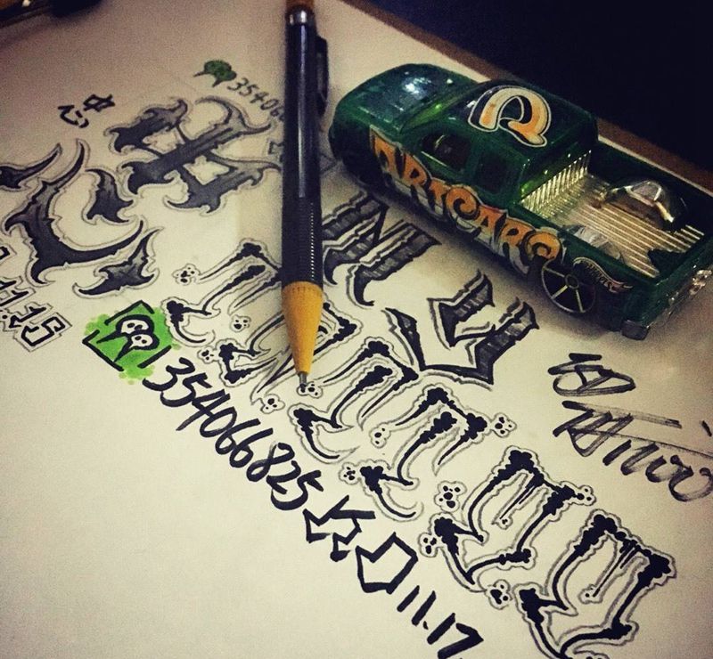 奇卡诺手写字体纹身图片_手稿插画欧美字符花体字奇卡诺纹身图案