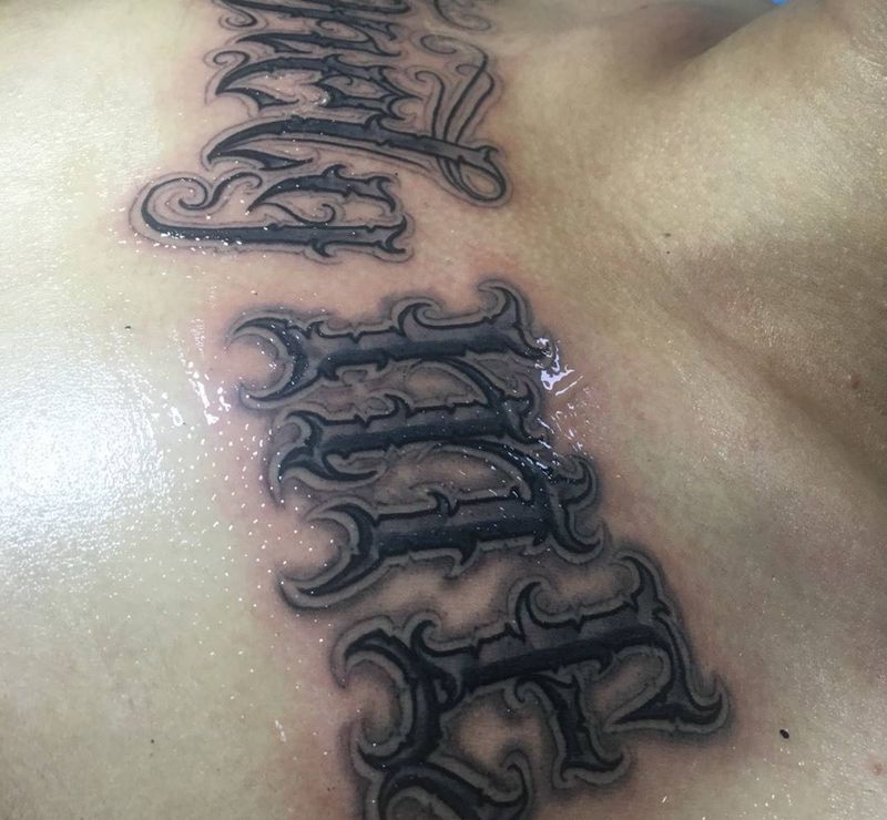 当前位置: 首页 >云南省昆明市纹身店-KD TATTOO Studio纹身图案>奇卡诺手写字体纹身图片_成品手稿胸部欧美字符花体字奇卡诺纹身图案