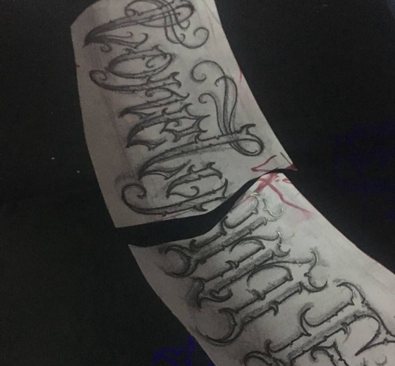 当前位置: 首页 >云南省昆明市纹身店-KD TATTOO Studio纹身图案>奇卡诺手写字体纹身图片_成品手稿胸部欧美字符花体字奇卡诺纹身图案